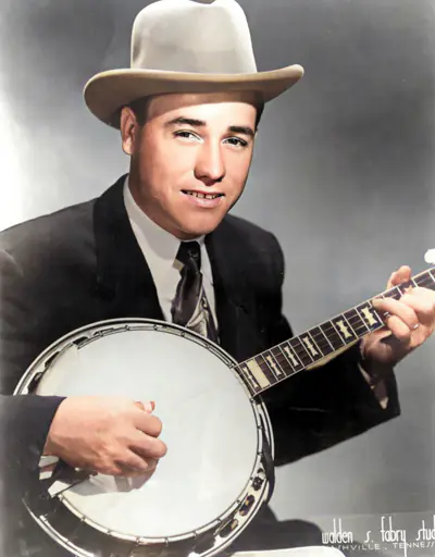 In late 1945, after World War II factory work and regional radio stints, Scruggs auditioned for Bill Monroe and joined Monroe's Blue Grass Boys. Within weeks he was on the Grand Ole Opry stage in Nashville. The crisp attack, syncopation, and rolling arpeggios of his three-finger approach exploded expectations for the five-string banjo. On Monroe's shows, with bandmates including Lester Flatt, Chubby Wise, and Howard Watts (Cedric Rainwater), Scruggs's banjo shifted from a comic novelty to a lead voice equal to fiddle, mandolin, and guitar, defining the emergent sound that would be called bluegrass.Flatt and Scruggs and the Foggy Mountain Boys