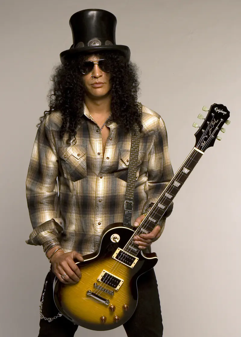 Slash built a paradoxical iconography: a musician who distrusts celebrity yet understands the power of an image. His top hat, curls, and Les Paul are not fashion trivia but a deliberate readability - he has argued, "To be truly iconic, you need to be able to be recognized in a silhouette". That self-awareness, rooted in a childhood around designers and visual artists, helped him survive an era when MTV rewarded the theatrical. But the silhouette serves the sound. His playing is lyric-first: bends that speak like voice, blues phrasing welded to hard-rock weight, and solos composed as melodies you can hum. In Guns N' Roses, that lyricism counterbalanced Axl Rose's volatility; in later projects, it became the stable center around which singers and drummers could rotate.