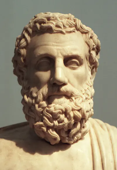 Aeschylus began competing at the City Dionysia in the early fifth century BCE and became the first tragedian whose career can be traced through repeated victories; later sources credit him with expanding tragedy by adding a second actor and enlarging the dramatic possibilities of conflict. He fought at Marathon (490), probably at Salamis (480), and perhaps at Plataea (479); those campaigns pulse through The Persians (472), his surviving history-tragedy staged from the enemy court to make Athenians contemplate victory with dread and restraint. His later work turned increasingly to inherited guilt and civic justice: Seven Against Thebes (c. 467) compresses dynastic violence into claustrophobic doom, while the Oresteia trilogy (458) - Agamemnon, The Libation Bearers, The Eumenides - stages a long moral migration from blood-feud to adjudication under Athena. He spent time in Sicily under the patronage of Hieron of Syracuse, revising and restaging plays in a wider Greek world, and he died around 456 at Gela; tradition says his epitaph emphasized Marathon rather than drama, a final self-definition as citizen-soldier.Philosophy, Style, and Themes