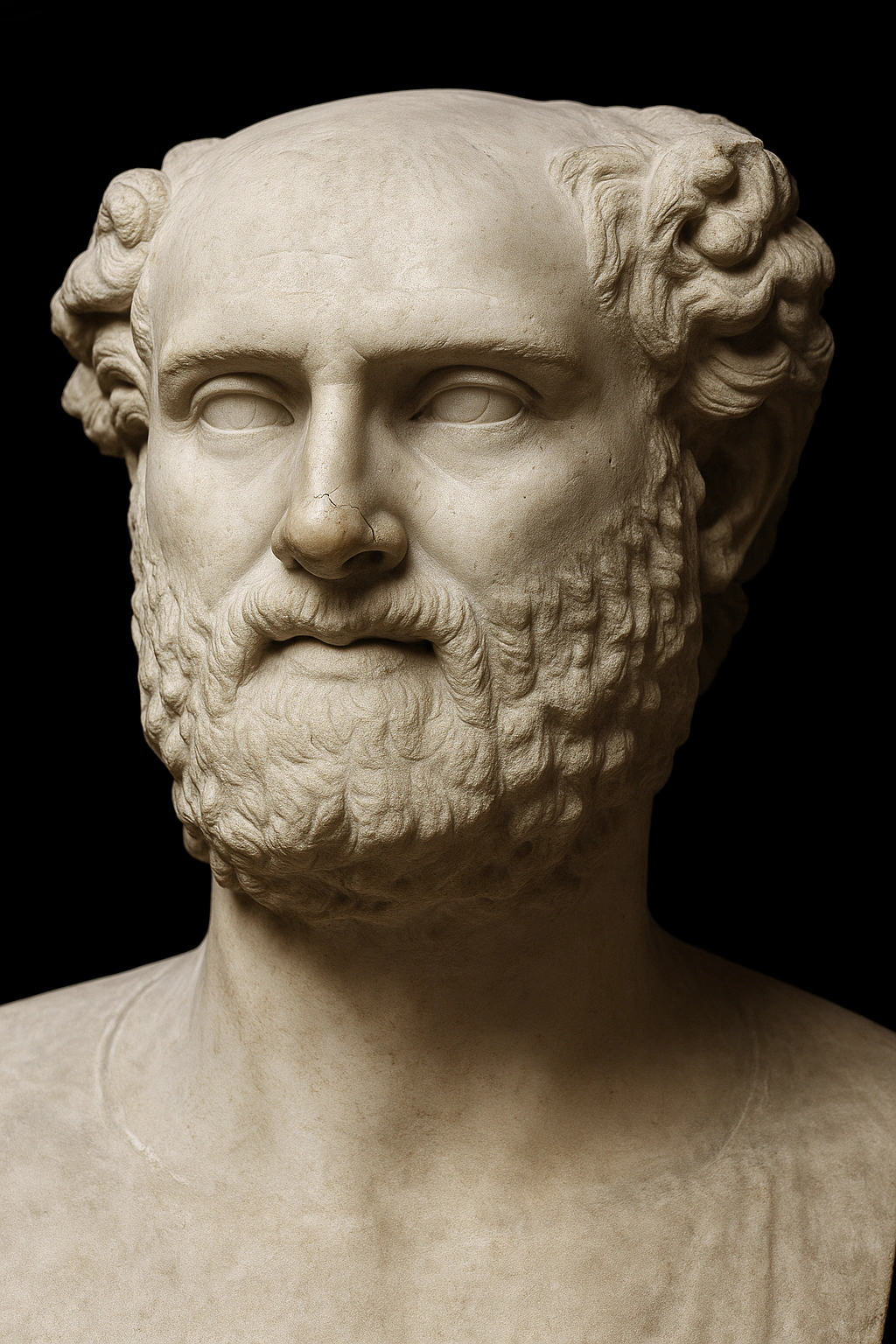 Aristophanes began producing in the 420s BCE, winning early notice with Babylonians (426, now lost), a satire that reportedly angered the populist leader Cleon and drew political retaliation. He answered with an even bolder attack in Knights (424), then broadened his canvas: Wasps (422) skewers litigious addiction; Peace (421) imagines an exhausted polis yearning for relief; Clouds (first produced 423, revised later) lampoons intellectual pretension through a comic Socrates; Birds (414) builds a utopian city in the air even as Athens lunges toward the Sicilian disaster. Later, in the harsher postwar world, his comedies turned elegiac and reparative: Lysistrata (411) and Thesmophoriazusae (411) enlist women to expose male political failure; Frogs (405) stages a contest between Aeschylus and Euripides as Athens searches for moral ballast; Ecclesiazusae (c. 392) and Plutus (388) reflect a shift toward domestic plots and social ethics as Old Comedys direct chorus-politics waned. He died around 380 BCE, having watched the city he loved lose empire, regain democracy, and argue on.Philosophy, Style, and Themes