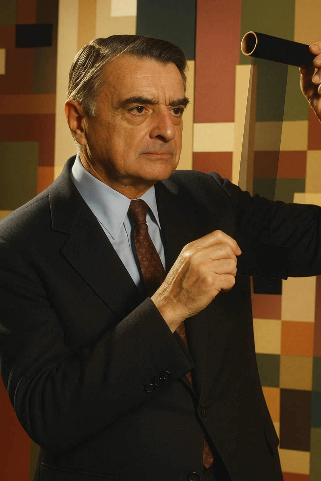 Beyond products, Land pursued fundamental questions in human vision. Through deceptively simple experiments with colored "Mondrian" patterns, he showed that perceived color depends strongly on spatial context and the relative intensities across the scene rather than on the absolute wavelengths reaching the eye at a point. His "Retinex" theory (a portmanteau of retina and cortex) proposed mechanisms of color constancy, how we perceive stable colors despite changes in illumination, that anticipated later computational and neuroscientific approaches to vision.Conflict with Kodak and Corporate Transition