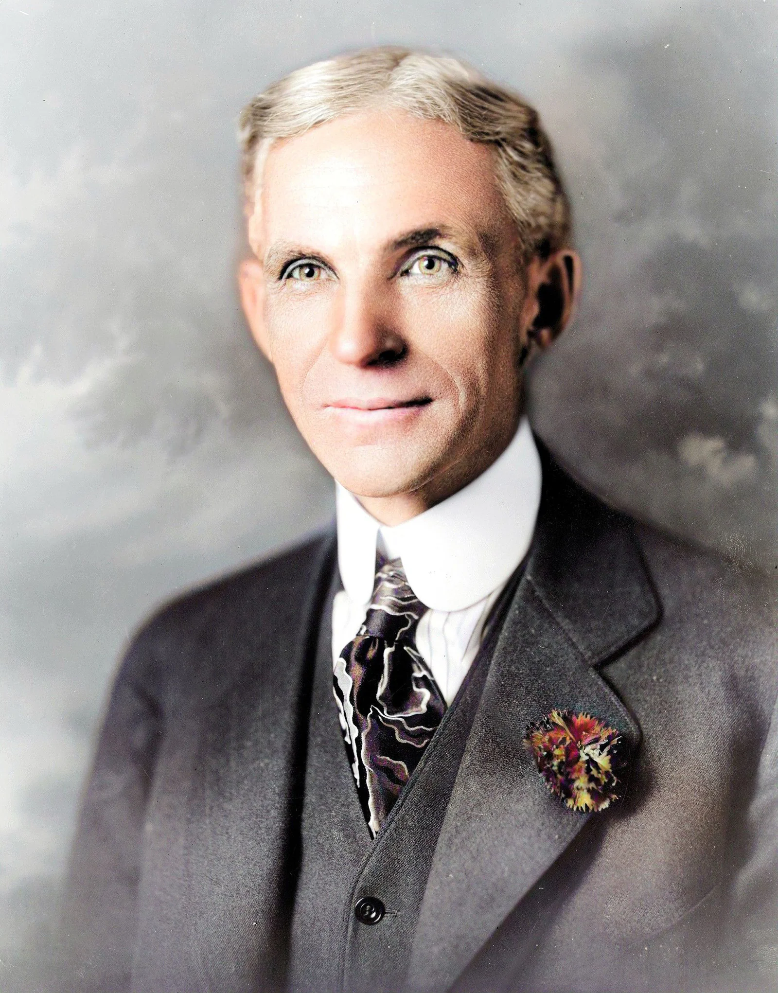 Ford built his first gasoline vehicle, the Quadricycle, in 1896; early ventures faltered, but in 1903 he co-founded Ford Motor Company and soon proved his engineering and promotional gifts with models like the 1908 Model T. The turning point came with manufacturing: the Highland Park plant perfected moving assembly-line methods by 1913-1914, radically reducing build time and cost, and Ford stunned industry with the 1914 five-dollar day, meant to stabilize labor, reduce turnover, and bind workers to a disciplined, moralized corporate order. The company expanded into River Rouge's vertically integrated complex and dominated mass automobility, yet Ford's era also included darker currents - his anti-union security regime, paternalistic "Sociological Department", and his antisemitic newspaper campaign in The Dearborn Independent (compiled as The International Jew) that damaged lives and his reputation. In the 1940s, as age and illness narrowed his control, labor conflict culminated in the 1941 recognition of the UAW; he died April 7, 1947, in Dearborn, Michigan.Philosophy, Style, and Themes