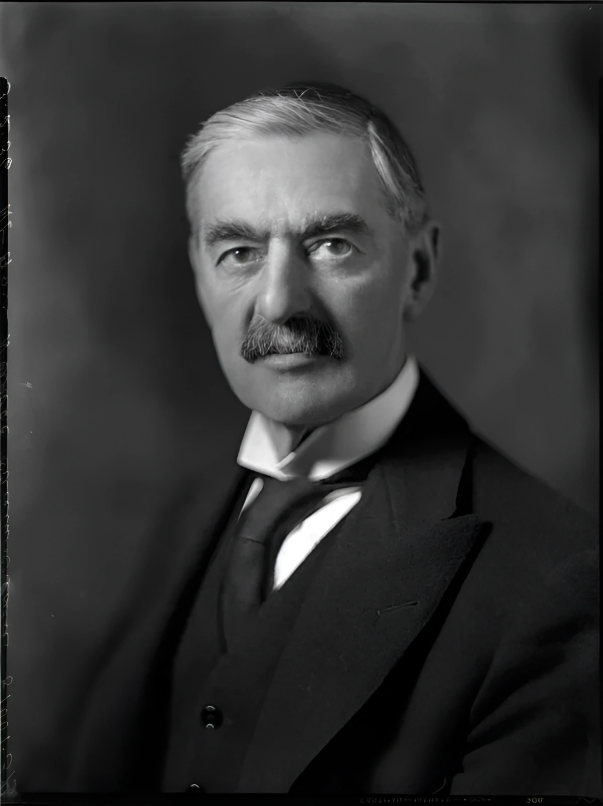 Other people related to Neville: Nancy Astor (Politician), Stanley Baldwin (Statesman), Joseph P. Kennedy (Diplomat), David Low (Cartoonist), Michael Foot (Politician), Lord Halifax (Politician), Frank Hornby (Inventor), Joseph Lyons (Statesman)