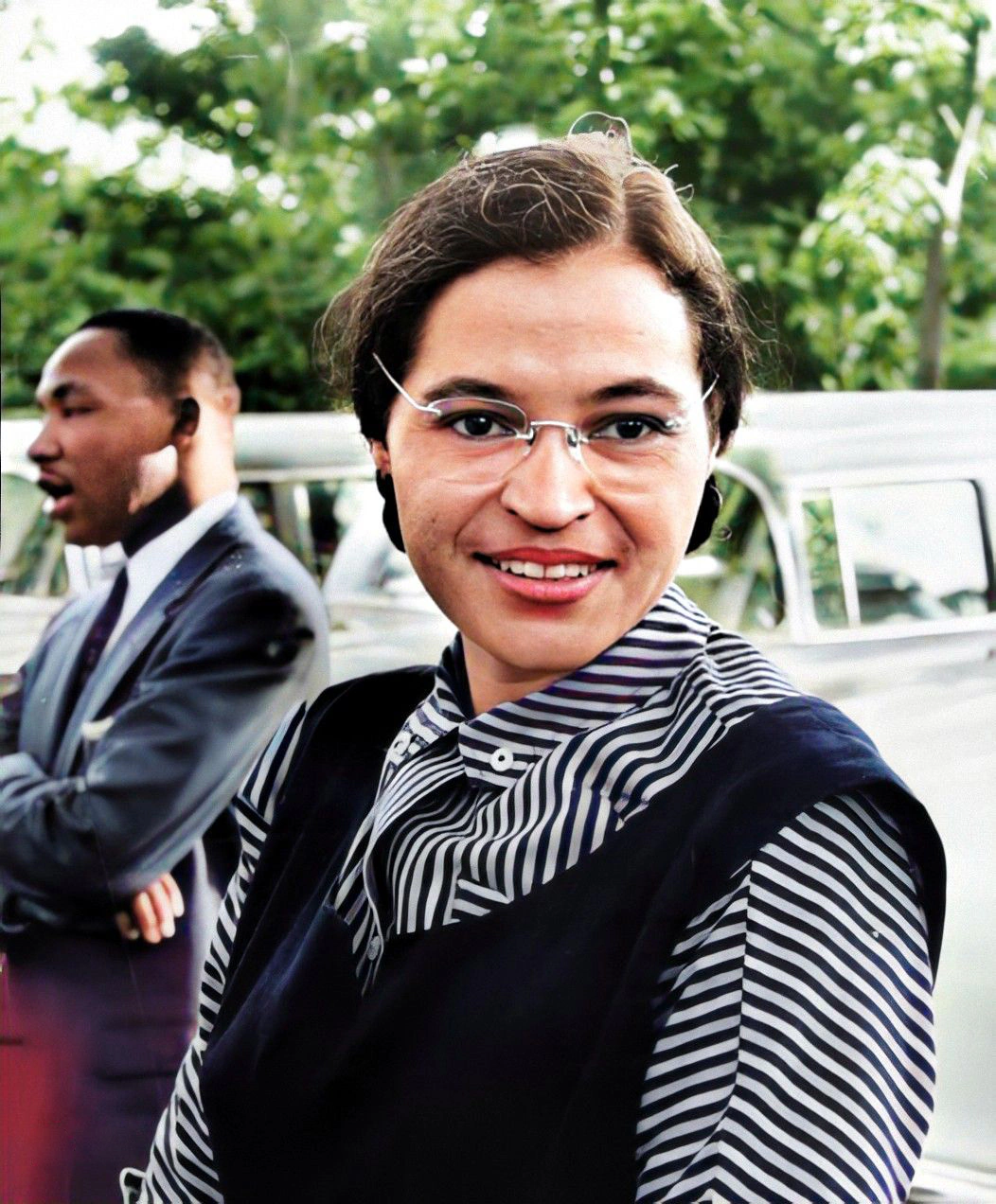 Long before 1955, Parks was already an experienced organizer: NAACP secretary in Montgomery (1943-1957), investigator of sexual violence cases, and a key figure in voter-registration work amid reprisals. On December 1, 1955, after leaving her job as a seamstress at Montgomery Fair, she refused bus driver James F. Blake's order to surrender her seat to a white passenger and was arrested. Her case, strategically embraced by local leaders and the Women's Political Council, ignited the Montgomery Bus Boycott led by a young Martin Luther King Jr., and the legal challenge Browder v. Gayle (1956) ended bus segregation. The victory did not bring safety; she and Raymond lost work and endured threats, moving in 1957 to Detroit, where she later worked for Congressman John Conyers (1965-1988) while remaining active in housing, policing, and anti-war debates. In later decades she helped found the Rosa and Raymond Parks Institute for Self Development, and her public honors - including the Presidential Medal of Freedom (1996) and Congressional Gold Medal (1999) - arrived alongside continued advocacy.Philosophy, Style, and Themes