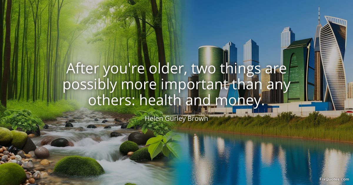 "After you're older, two things are possibly more important than any others: health and money"