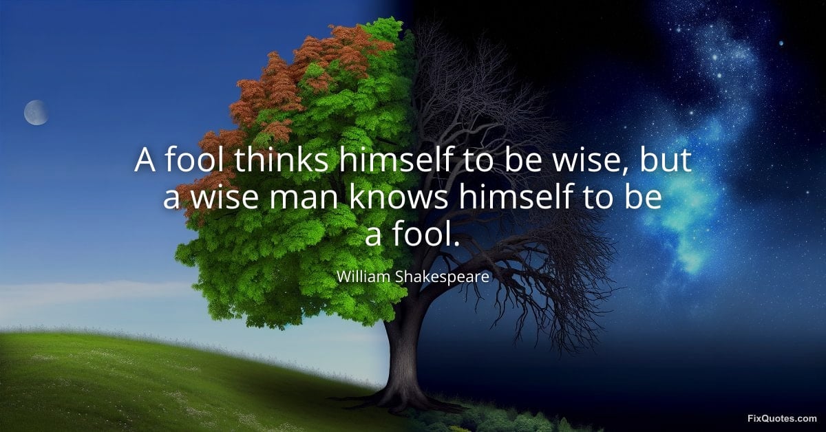 Notice Shakespeare’s choice of the word “knows.” Not “admits,” not “wonders,” not “suspects”, knows. It’s a verb with weight, suggesting clarity earned through experience, not a performance of modesty. That single word turns humility from a social posture into a practiced skill: “A fool thinks himself to be wise, but a wise man knows himself to be a fool.”