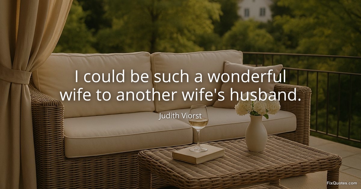 Long before her wit became shorthand for modern family life, Judith Viorst built a career on telling the truth with a smile, writing poems, children’s classics, and memoirs that land because they’re uncomfortably accurate. That accuracy shows up in her mischievous confession: “I could be such a wonderful wife to another wife's husband.”