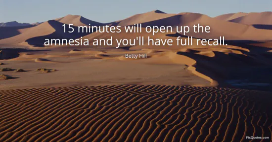 Hill, Betty. (2026, January 17). 15 minutes will open up the amnesia and you'll have full recall. FixQuotes. https://fixquotes.com/quotes/15-minutes-will-open-up-the-amnesia-and-youll-43311/
