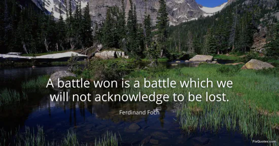 Foch, Ferdinand. "A battle won is a battle which we will not acknowledge to be lost." FixQuotes. January 17, 2026. https://fixquotes.com/quotes/a-battle-won-is-a-battle-which-we-will-not-54168/.
