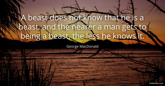 MacDonald, George. (2026, January 17). A beast does not know that he is a beast, and the nearer a man gets to being a beast, the less he knows it. FixQuotes. https://fixquotes.com/quotes/a-beast-does-not-know-that-he-is-a-beast-and-the-59501/