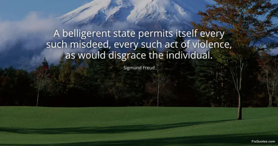 Freud, Sigmund. (2026, January 18). A belligerent state permits itself every such misdeed, every such act of violence, as would disgrace the individual. FixQuotes. https://fixquotes.com/quotes/a-belligerent-state-permits-itself-every-such-1773/