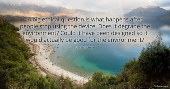 Norman, Donald. "A big ethical question is what happens after people stop using the device. Does it degrade the environment? Could it have been designed so it would actually be good for the environment?" FixQuotes. January 17, 2026. https://fixquotes.com/quotes/a-big-ethical-question-is-what-happens-after-50510/.