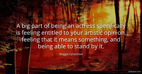 Gyllenhaal, Maggie. (2026, January 15). A big part of being an actress specifically is feeling entitled to your artistic opinion, feeling that it means something, and being able to stand by it. FixQuotes. https://fixquotes.com/quotes/a-big-part-of-being-an-actress-specifically-is-157960/