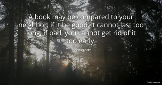 Brooke, Rupert. "A book may be compared to your neighbor: if it be good, it cannot last too long; if bad, you cannot get rid of it too early." FixQuotes. January 16, 2026. https://fixquotes.com/quotes/a-book-may-be-compared-to-your-neighbor-if-it-be-85546/.