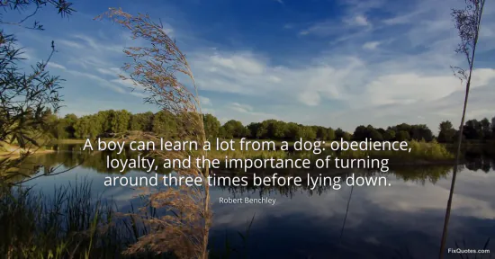 Benchley, Robert. (2026, January 17). A boy can learn a lot from a dog: obedience, loyalty, and the importance of turning around three times before lying down. FixQuotes. https://fixquotes.com/quotes/a-boy-can-learn-a-lot-from-a-dog-obedience-75324/