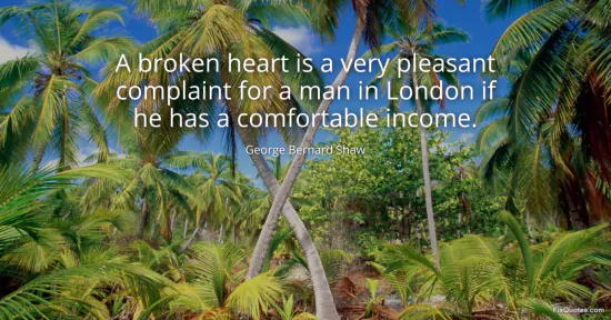 Shaw, George Bernard. (2026, January 17). A broken heart is a very pleasant complaint for a man in London if he has a comfortable income. FixQuotes. https://fixquotes.com/quotes/a-broken-heart-is-a-very-pleasant-complaint-for-a-26984/