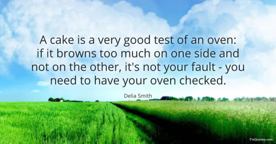 Smith, Delia. "A cake is a very good test of an oven: if it browns too much on one side and not on the other, it's not your fault - you need to have your oven checked." FixQuotes. January 15, 2026. https://fixquotes.com/quotes/a-cake-is-a-very-good-test-of-an-oven-if-it-167317/.