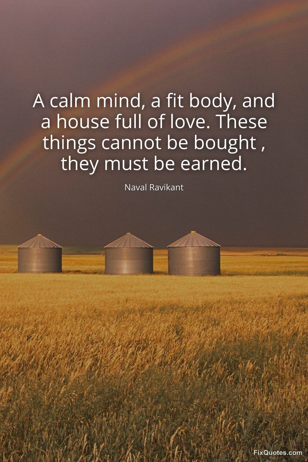 Ravikant, Naval. (2026, January 24). A calm mind, a fit body, and a house full of love. These things cannot be bought , they must be earned. FixQuotes. https://fixquotes.com/quotes/a-calm-mind-a-fit-body-and-a-house-full-of-love-184077/