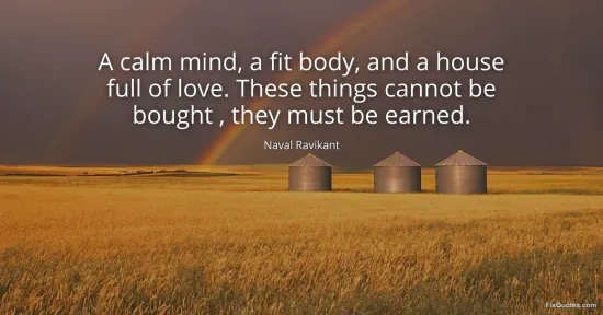 Ravikant, Naval. "A calm mind, a fit body, and a house full of love. These things cannot be bought , they must be earned." FixQuotes. January 24, 2026. https://fixquotes.com/quotes/a-calm-mind-a-fit-body-and-a-house-full-of-love-184077/.