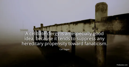 Sagan, Carl. (2026, January 17). A celibate clergy is an especially good idea, because it tends to suppress any hereditary propensity toward fanaticism. FixQuotes. https://fixquotes.com/quotes/a-celibate-clergy-is-an-especially-good-idea-30387/