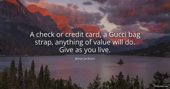 Jackson, Jesse. (2026, January 16). A check or credit card, a Gucci bag strap, anything of value will do. Give as you live. FixQuotes. https://fixquotes.com/quotes/a-check-or-credit-card-a-gucci-bag-strap-anything-91618/