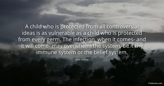 "A child who is protected from all controversial ideas is as vulnerable as a child who is protected from every germ. The infection, when it comes- and it will come- may overwhelm the system, be it the immune system or the belief system"