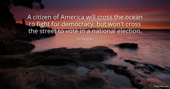 Vaughan, Bill. (2026, January 15). A citizen of America will cross the ocean to fight for democracy, but won't cross the street to vote in a national election. FixQuotes. https://fixquotes.com/quotes/a-citizen-of-america-will-cross-the-ocean-to-47587/
