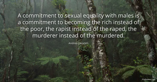 Dworkin, Andrea. "A commitment to sexual equality with males is a commitment to becoming the rich instead of the poor, the rapist instead of the raped, the murderer instead of the murdered." FixQuotes. January 17, 2026. https://fixquotes.com/quotes/a-commitment-to-sexual-equality-with-males-is-a-41055/.