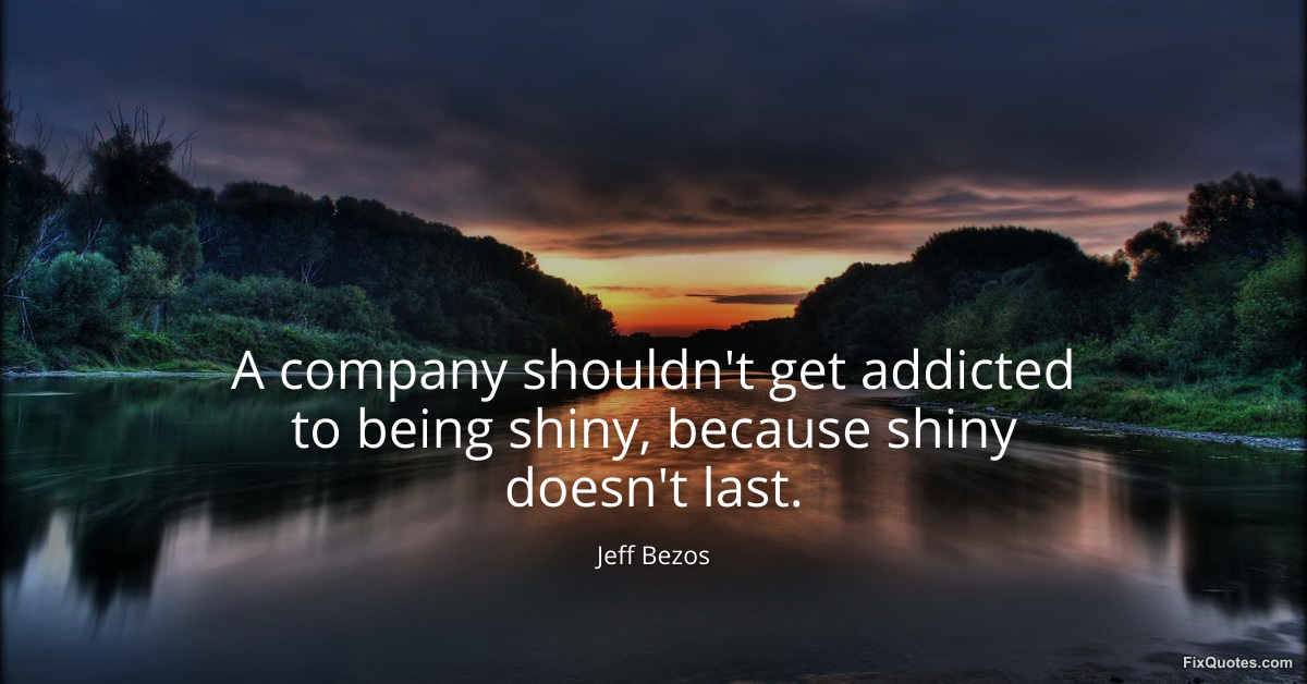 Bezos, Jeff. "A company shouldn't get addicted to being shiny, because shiny doesn't last." FixQuotes. March 25, 2026. https://fixquotes.com/quotes/a-company-shouldnt-get-addicted-to-being-shiny-186368/.