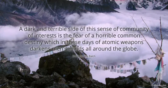 Balch, Emily Greene. (2026, January 15). A dark and terrible side of this sense of community of interests is the fear of a horrible common destiny which in these days of atomic weapons darkens men's minds all around the globe. FixQuotes. https://fixquotes.com/quotes/a-dark-and-terrible-side-of-this-sense-of-155399/