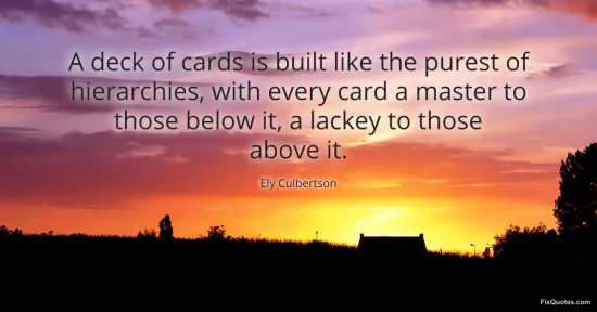 Culbertson, Ely. (2026, February 19). A deck of cards is built like the purest of hierarchies, with every card a master to those below it, a lackey to those above it. FixQuotes. https://fixquotes.com/quotes/a-deck-of-cards-is-built-like-the-purest-of-167382/