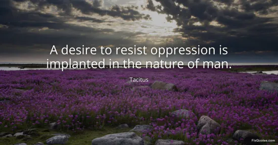 Tacitus. "A desire to resist oppression is implanted in the nature of man." FixQuotes. January 15, 2026. https://fixquotes.com/quotes/a-desire-to-resist-oppression-is-implanted-in-the-107615/.