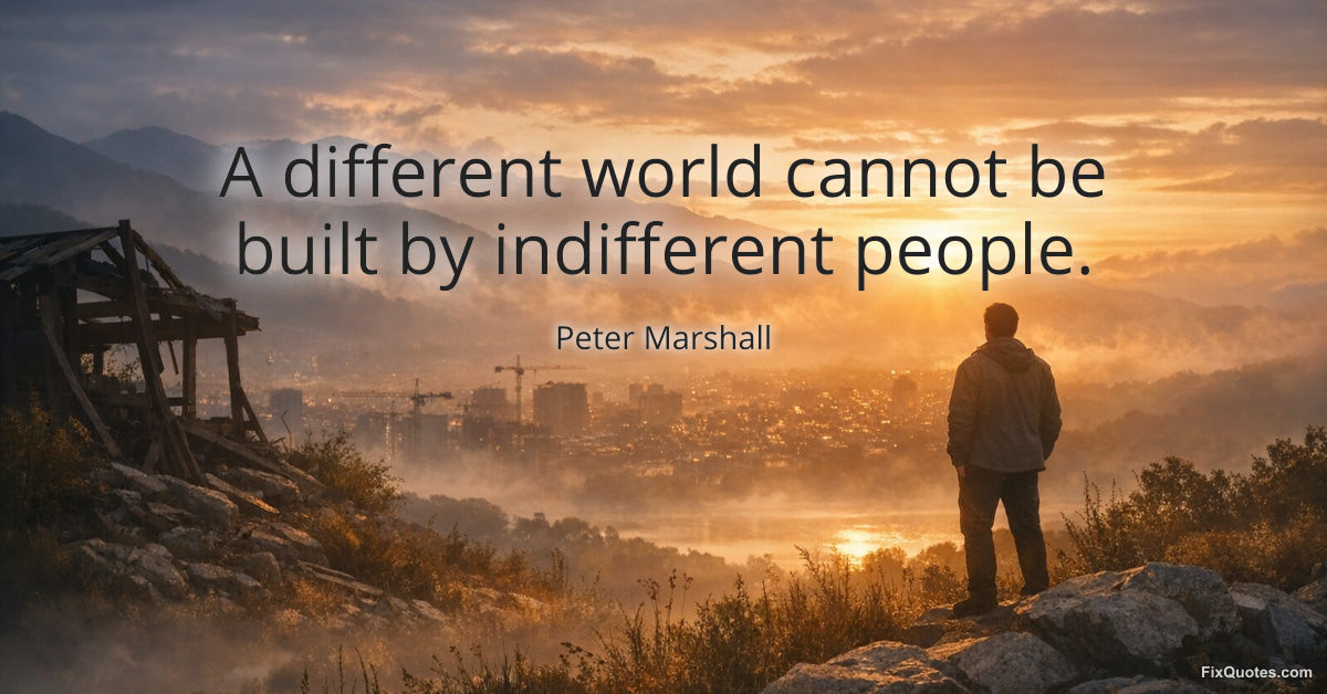 Marshall, Peter. (2026, March 2). A different world cannot be built by indifferent people. FixQuotes. https://fixquotes.com/quotes/a-different-world-cannot-be-built-by-indifferent-166478/