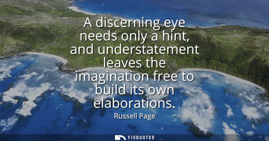 "A discerning eye needs only a hint, and understatement leaves the imagination free to build its own elaborations"