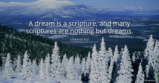 Eco, Umberto. (2026, January 16). A dream is a scripture, and many scriptures are nothing but dreams. FixQuotes. https://fixquotes.com/quotes/a-dream-is-a-scripture-and-many-scriptures-are-90720/