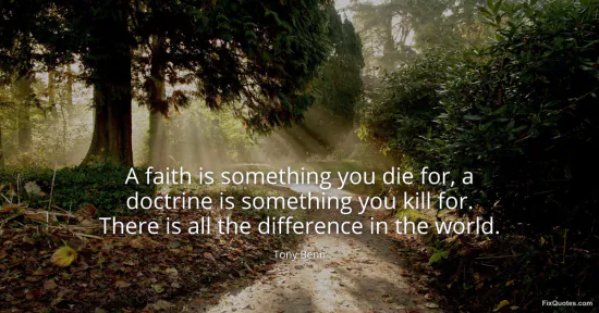 Benn, Tony. "A faith is something you die for, a doctrine is something you kill for. There is all the difference in the world." FixQuotes. January 18, 2026. https://fixquotes.com/quotes/a-faith-is-something-you-die-for-a-doctrine-is-19566/.