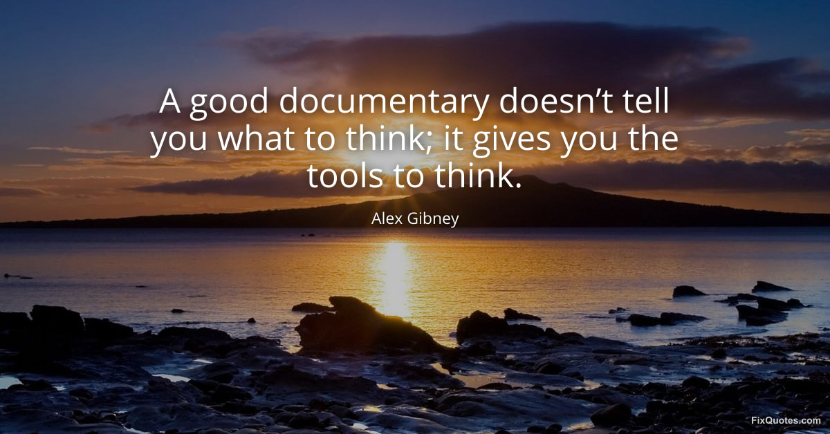 Gibney, Alex. (2026, January 26). A good documentary doesn’t tell you what to think; it gives you the tools to think. FixQuotes. https://fixquotes.com/quotes/a-good-documentary-doesnt-tell-you-what-to-think-184572/