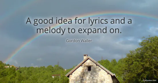Waller, Gordon. "A good idea for lyrics and a melody to expand on." FixQuotes. January 15, 2026. https://fixquotes.com/quotes/a-good-idea-for-lyrics-and-a-melody-to-expand-on-158344/.