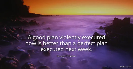 Patton, George S. (2026, February 8). A good plan violently executed now is better than a perfect plan executed next week. FixQuotes. https://fixquotes.com/quotes/a-good-plan-violently-executed-now-is-better-than-17759/