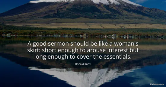 Knox, Ronald. "A good sermon should be like a woman's skirt: short enough to arouse interest but long enough to cover the essentials." FixQuotes. January 14, 2026. https://fixquotes.com/quotes/a-good-sermon-should-be-like-a-womans-skirt-short-21774/.