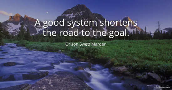 Marden, Orison Swett. (2026, January 14). A good system shortens the road to the goal. FixQuotes. https://fixquotes.com/quotes/a-good-system-shortens-the-road-to-the-goal-35085/
