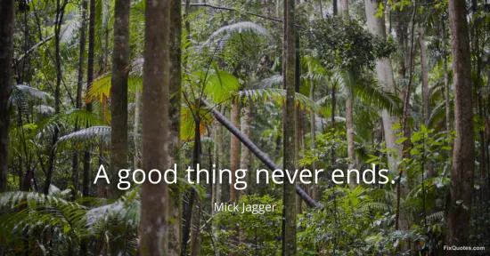Jagger, Mick. (2026, January 15). A good thing never ends. FixQuotes. https://fixquotes.com/quotes/a-good-thing-never-ends-64787/