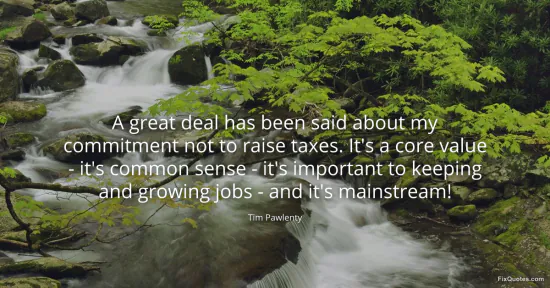 Pawlenty, Tim. "A great deal has been said about my commitment not to raise taxes. It's a core value - it's common sense - it's important to keeping and growing jobs - and it's mainstream!" FixQuotes. January 16, 2026. https://fixquotes.com/quotes/a-great-deal-has-been-said-about-my-commitment-105486/.