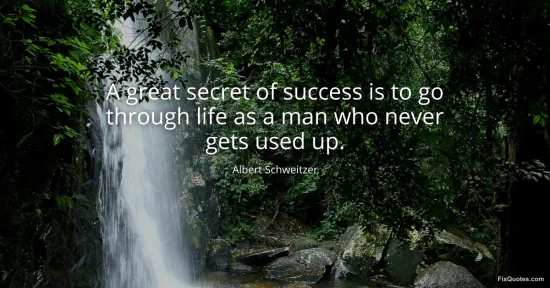 Schweitzer, Albert. "A great secret of success is to go through life as a man who never gets used up." FixQuotes. January 17, 2026. https://fixquotes.com/quotes/a-great-secret-of-success-is-to-go-through-life-29627/.