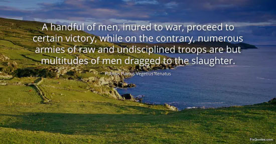 Renatus, Publius Flavius Vegetius. "A handful of men, inured to war, proceed to certain victory, while on the contrary, numerous armies of raw and undisciplined troops are but multitudes of men dragged to the slaughter." FixQuotes. January 15, 2026. https://fixquotes.com/quotes/a-handful-of-men-inured-to-war-proceed-to-certain-159513/.