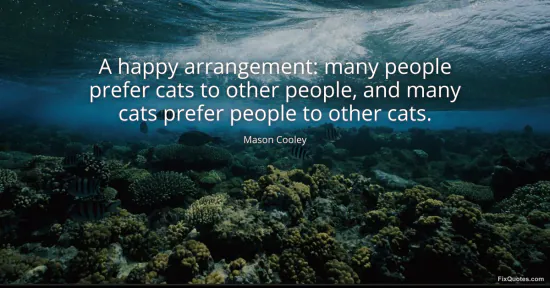 Cooley, Mason. (2026, January 16). A happy arrangement: many people prefer cats to other people, and many cats prefer people to other cats. FixQuotes. https://fixquotes.com/quotes/a-happy-arrangement-many-people-prefer-cats-to-128945/