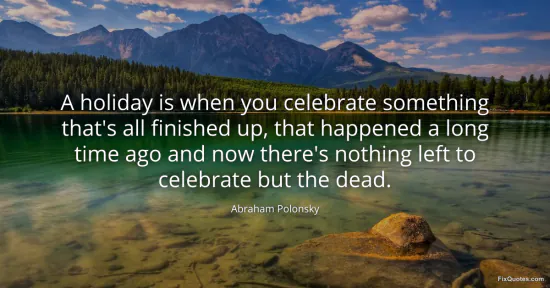 Polonsky, Abraham. (2026, January 16). A holiday is when you celebrate something that's all finished up, that happened a long time ago and now there's nothing left to celebrate but the dead. FixQuotes. https://fixquotes.com/quotes/a-holiday-is-when-you-celebrate-something-thats-108513/