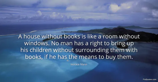 Mann, Horace. "A house without books is like a room without windows. No man has a right to bring up his children without surrounding them with books, if he has the means to buy them." FixQuotes. January 14, 2026. https://fixquotes.com/quotes/a-house-without-books-is-like-a-room-without-5232/.