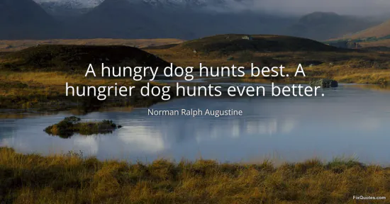 Augustine, Norman Ralph. "A hungry dog hunts best. A hungrier dog hunts even better." FixQuotes. January 15, 2026. https://fixquotes.com/quotes/a-hungry-dog-hunts-best-a-hungrier-dog-hunts-even-126162/.