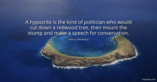 Stevenson, Adlai E. "A hypocrite is the kind of politician who would cut down a redwood tree, then mount the stump and make a speech for conservation." FixQuotes. January 14, 2026. https://fixquotes.com/quotes/a-hypocrite-is-the-kind-of-politician-who-would-138598/.